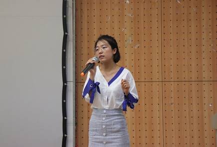 张青滦同学侧重讲解社会实践的宣传。她对新闻稿的写作提出了三点建议:抓住最核心的主题、提取最有效的信息和运用最具吸引力的字眼。此外,她还指出:“新闻写作者需要学会摘取被采访者的有用信息,做到文章条理清楚,不出现大篇幅的引用,并有具体事例的支撑。写作完毕后还要对稿件进行反复修改,避免基本的语言错误。”接下来她对新闻图片的拍摄进行讲解。张青滦同学强调了新闻图片的即时性和纪实性,并指出图片的文字说明要做到语言简洁、切中要点。对她来说,好的照片要具有感染力,而感染力来自于拍摄对象的眼神和微笑。张青滦同学认为善于捕捉,善于观察,方能成就好的照片。最后,她还指出宣传团队要运用好校内校外各大网站,并结合新媒体提高实践活动的知名度和影响力。