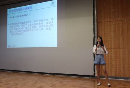 6月5日晚7点,外国语学院2018年大学生暑期社会实践培训第三讲“社会实践的宣传及成果固化”在外院报告厅开展。本次课程由16级优秀志愿者张青滦同学和15级优秀志愿者袁艺同学主讲,外国语学院全体16级学生参加了此次培训。