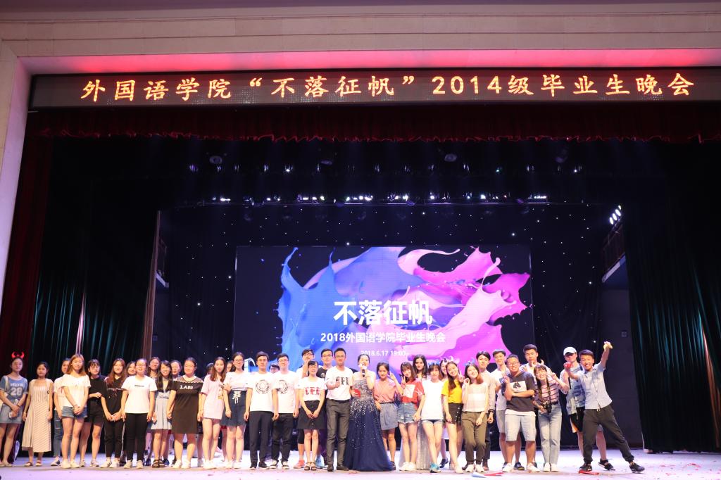 外国语学院“不落征帆”2014级毕业生晚会于2018年6月17日晚7点在大学生活动中心剧场举行。外国语学院党委书记王平祥、党委副书记杨成才及各位老师莅临现场。